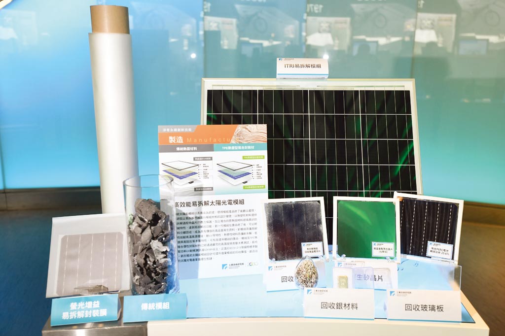 工研院開(kāi)發(fā)「高效能易拆解太陽(yáng)光電模組」,可有效減廢與提高汰役太陽(yáng)能板循環(huán)價(jià)值。圖/工研院提供