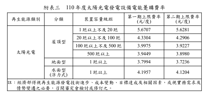 民國(guó)110年(西元 2021年)購(gòu)電費(fèi)率